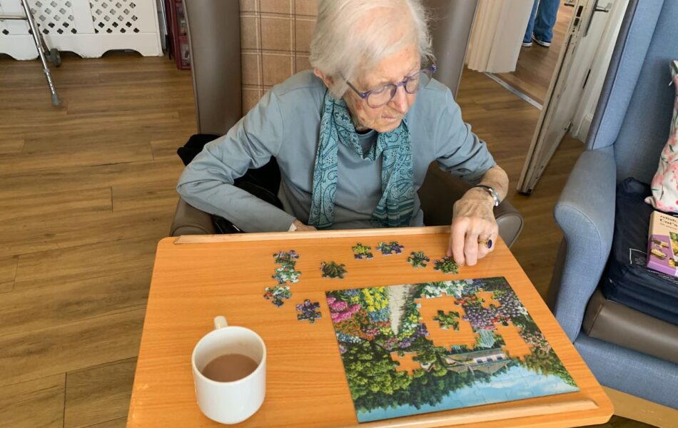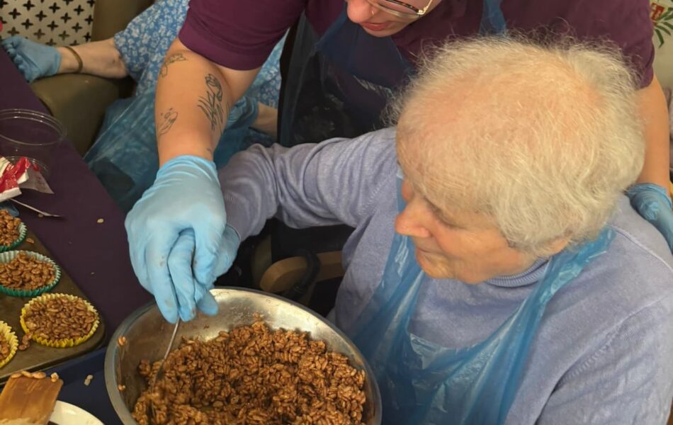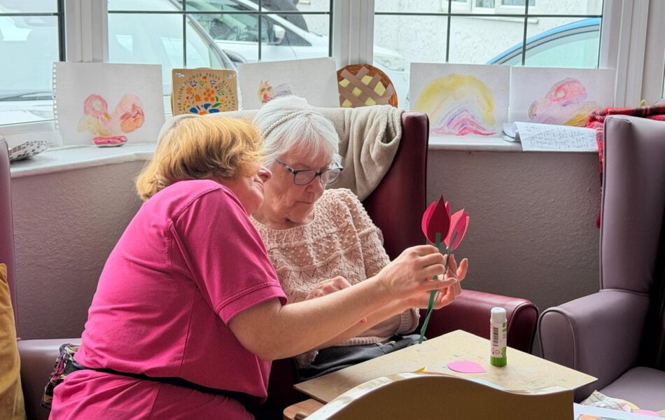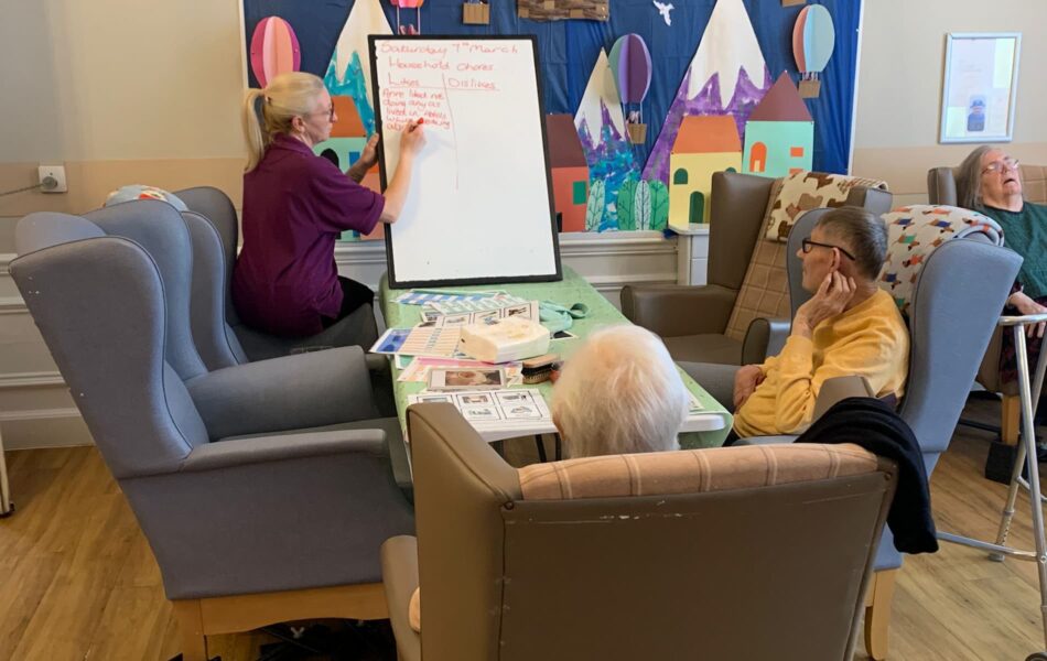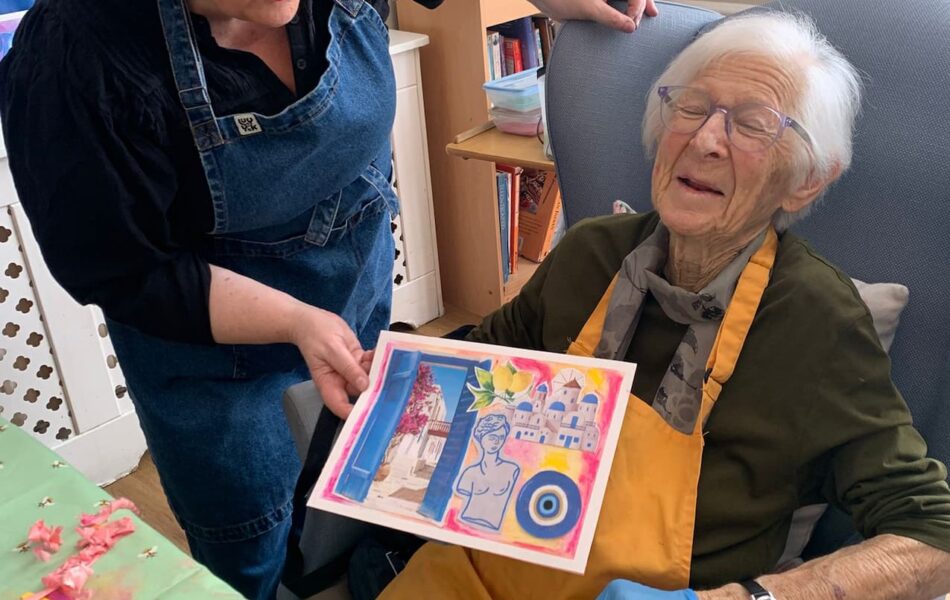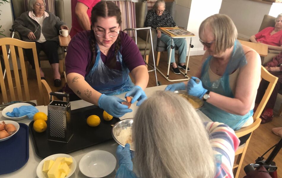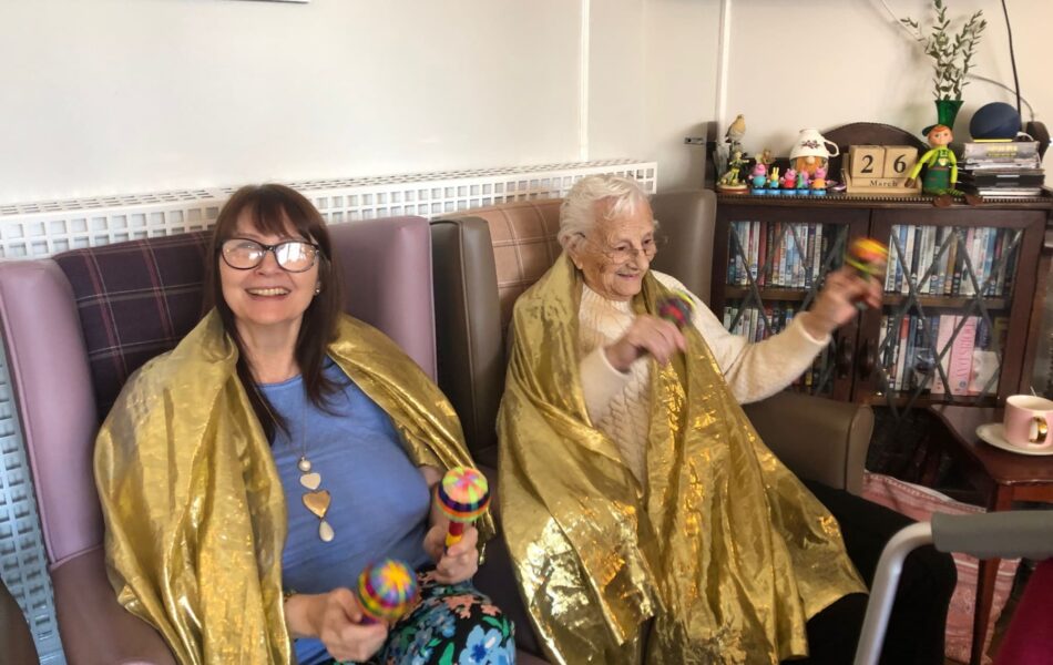 A full schedule of in-home activities kept everyone engaged, including baking, games, pampering sessions, flower arranging, quizzes, armchair travel (featuring Greece this month), knitting club, music and dance, shopping trips, and personalised one-to-one sensory sessions.