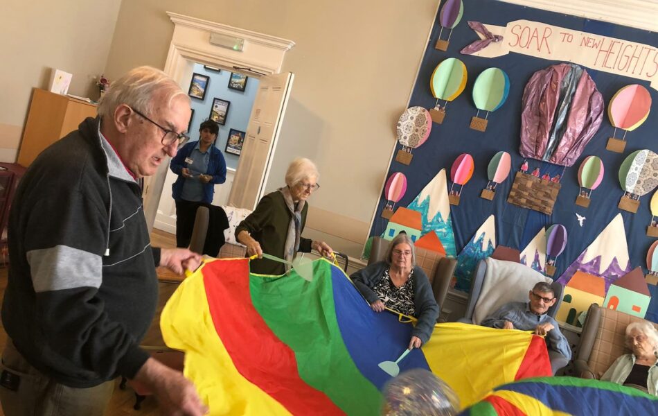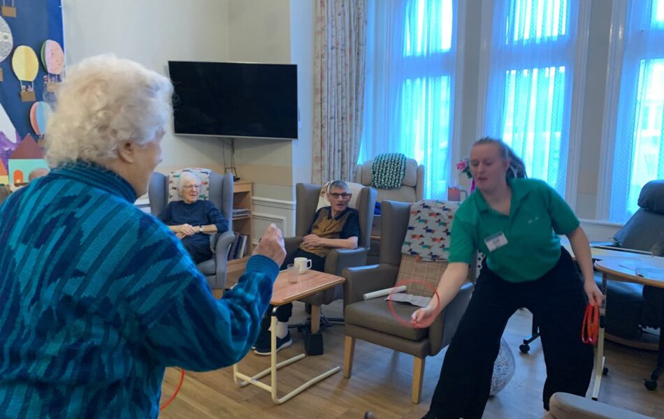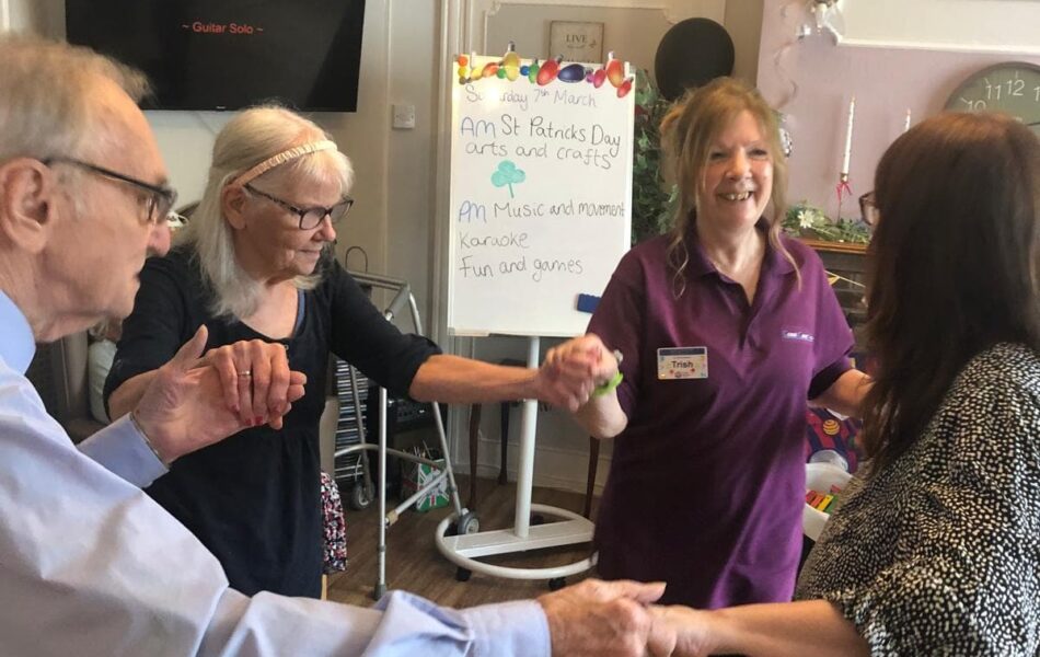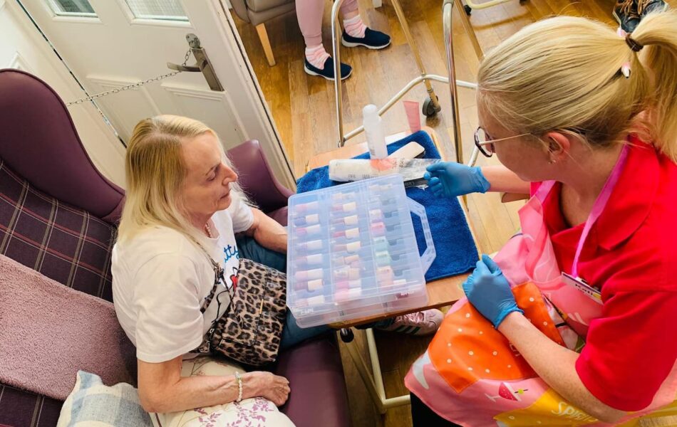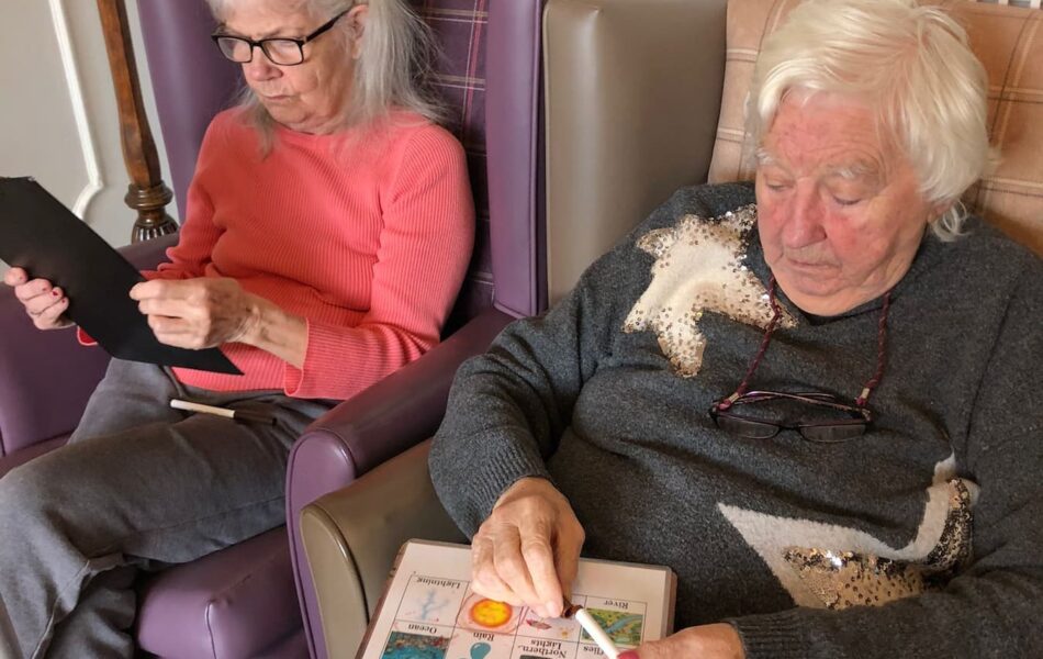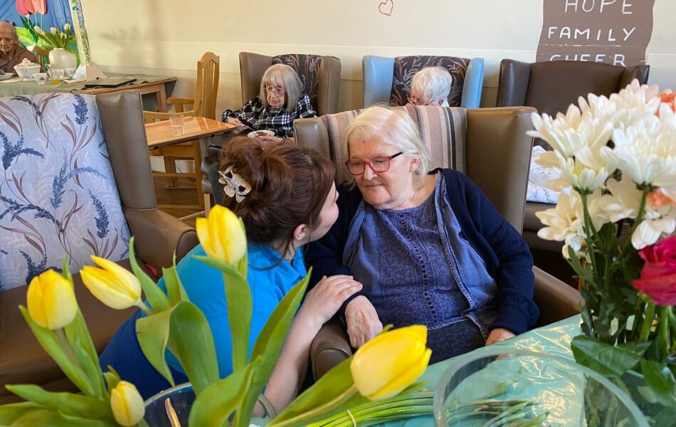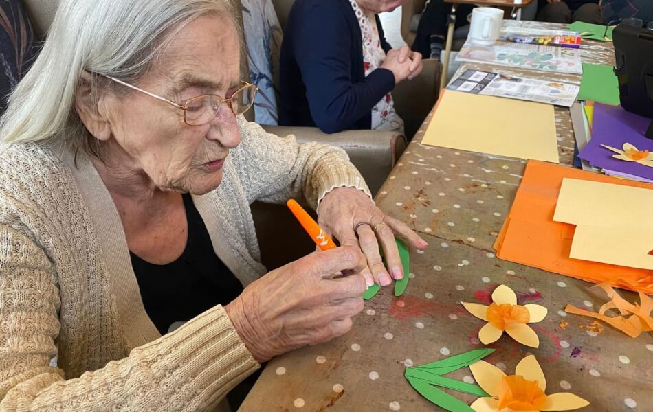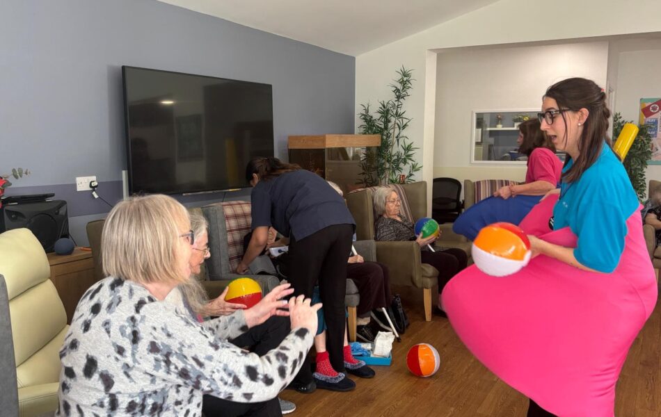 A full schedule of in-home activities kept everyone engaged, including baking, games, pampering sessions, flower arranging, quizzes, armchair travel (featuring Greece this month), knitting club, music and dance, shopping trips, and personalised one-to-one sensory sessions.