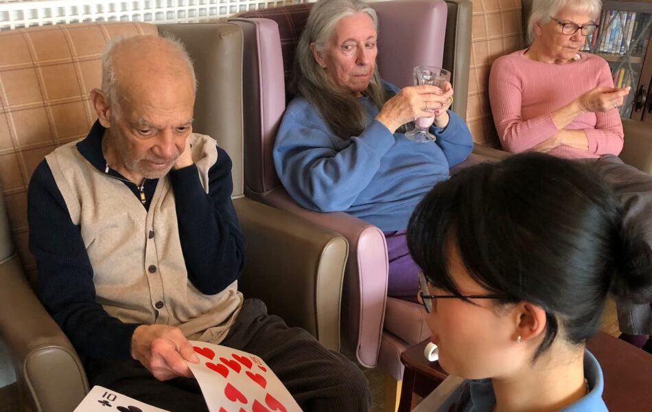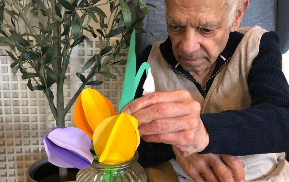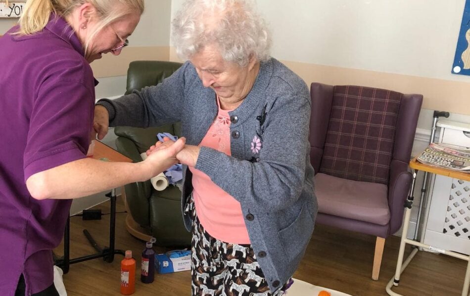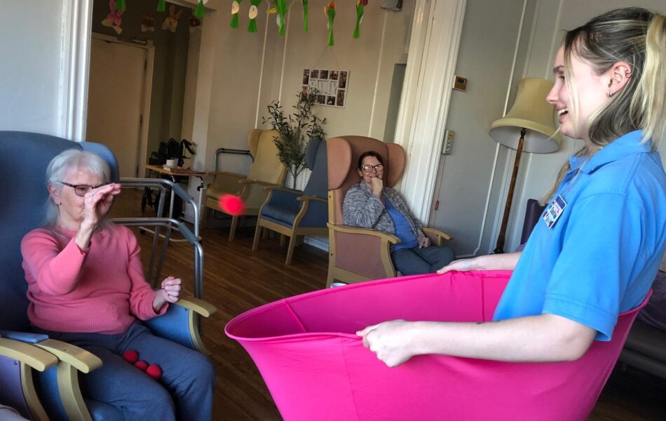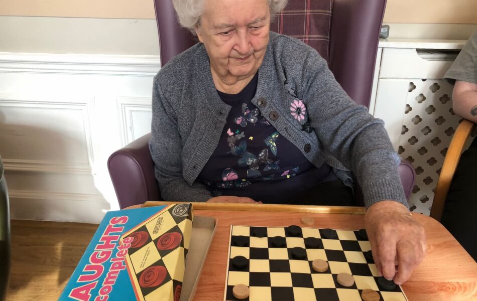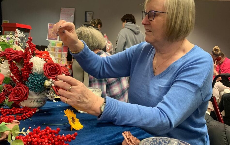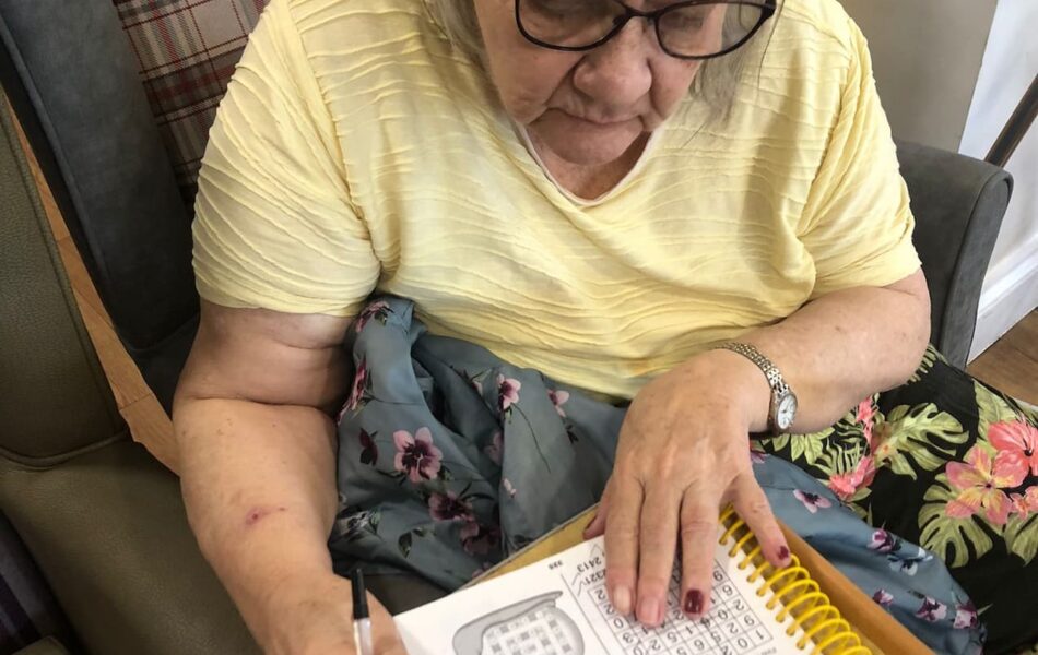 A full schedule of in-home activities kept everyone engaged, including baking, games, pampering sessions, flower arranging, quizzes, armchair travel (featuring Greece this month), knitting club, music and dance, shopping trips, and personalised one-to-one sensory sessions.